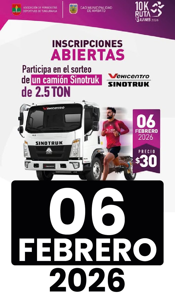 🎁 Todos los corredores inscritos participarán automáticamente en el sorteo de un Camión Sinotruk, gracias al respaldo de Vehicentro, sumando un incentivo extraordinario a una jornada ya llena de emoción y adrenalina.