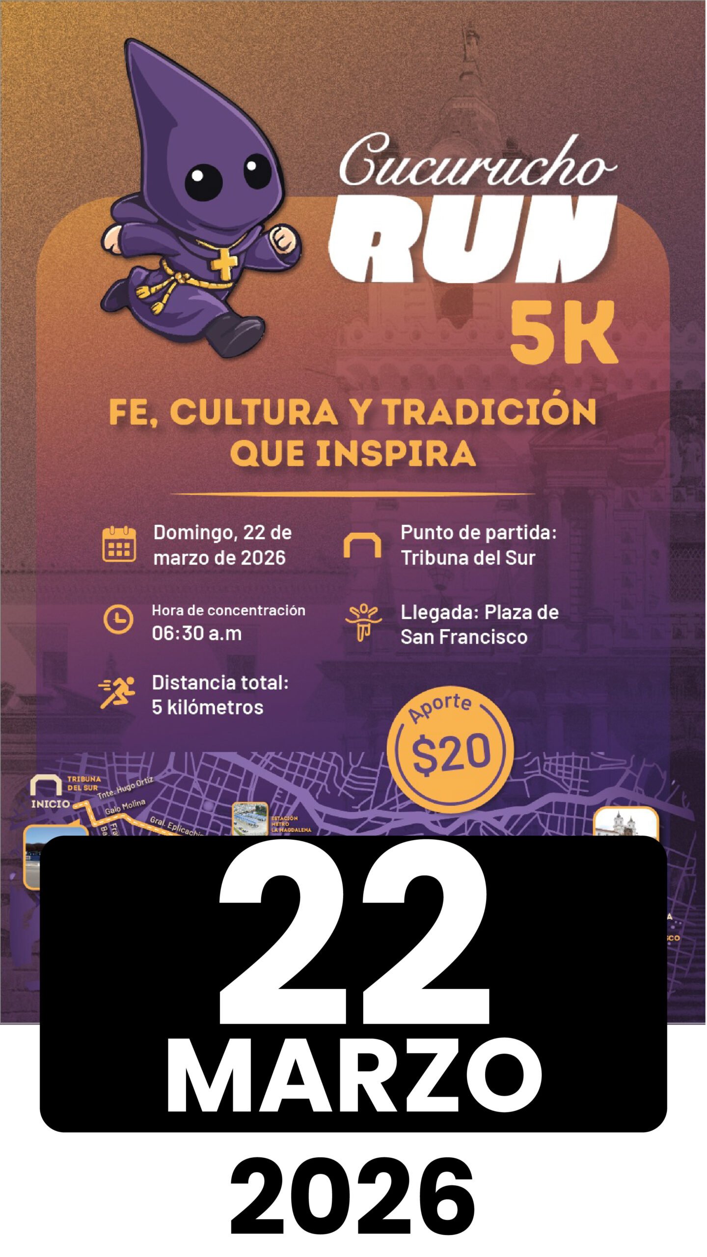 Te invitamos a unirte al Cucurucho Run 5K, el evento que une fe, tradición y cultura en un solo latido quiteño 🏃♂️✝️.